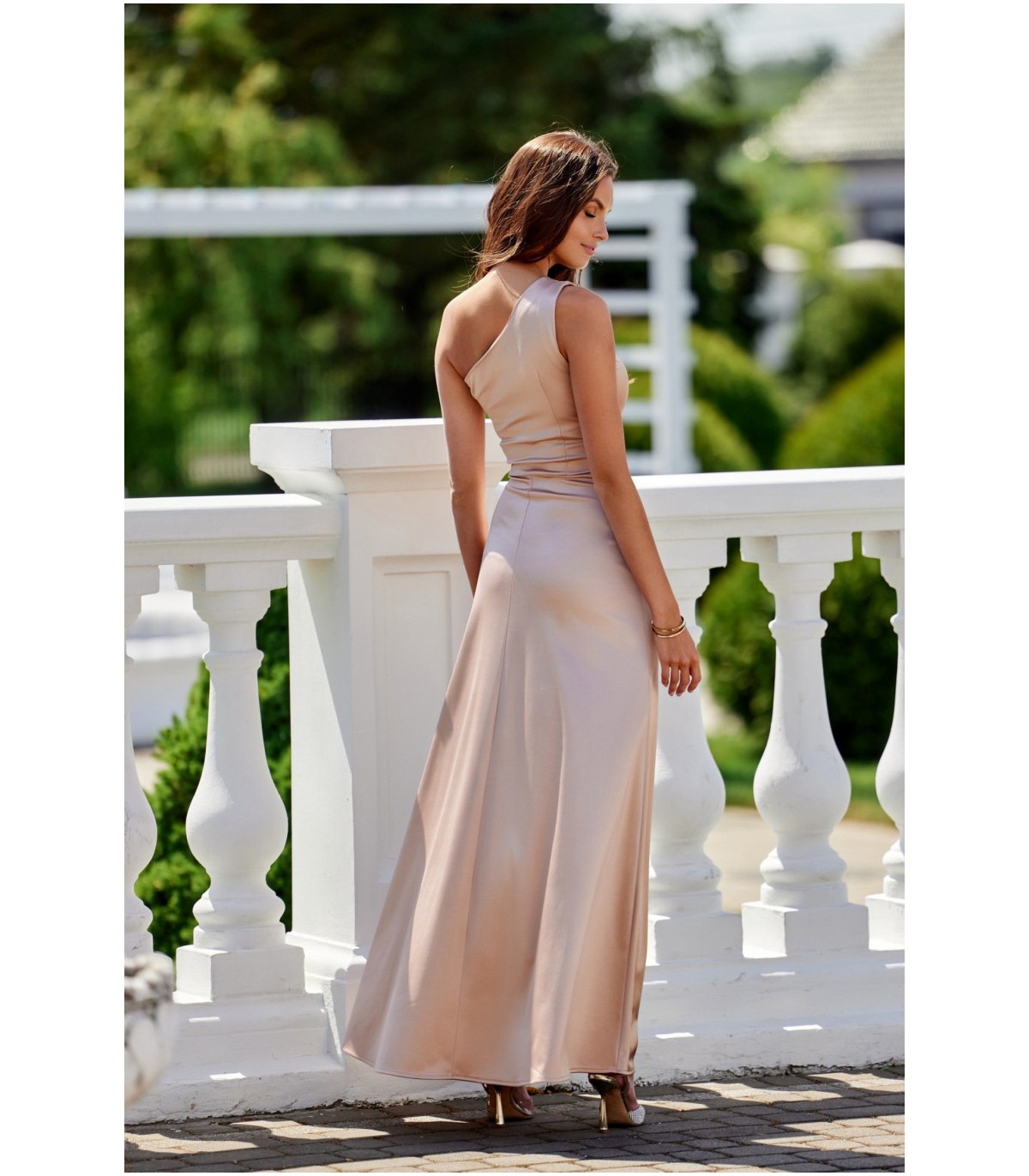 Inez — еднорамна вечерна макси рокля от еластичен сатен с цип