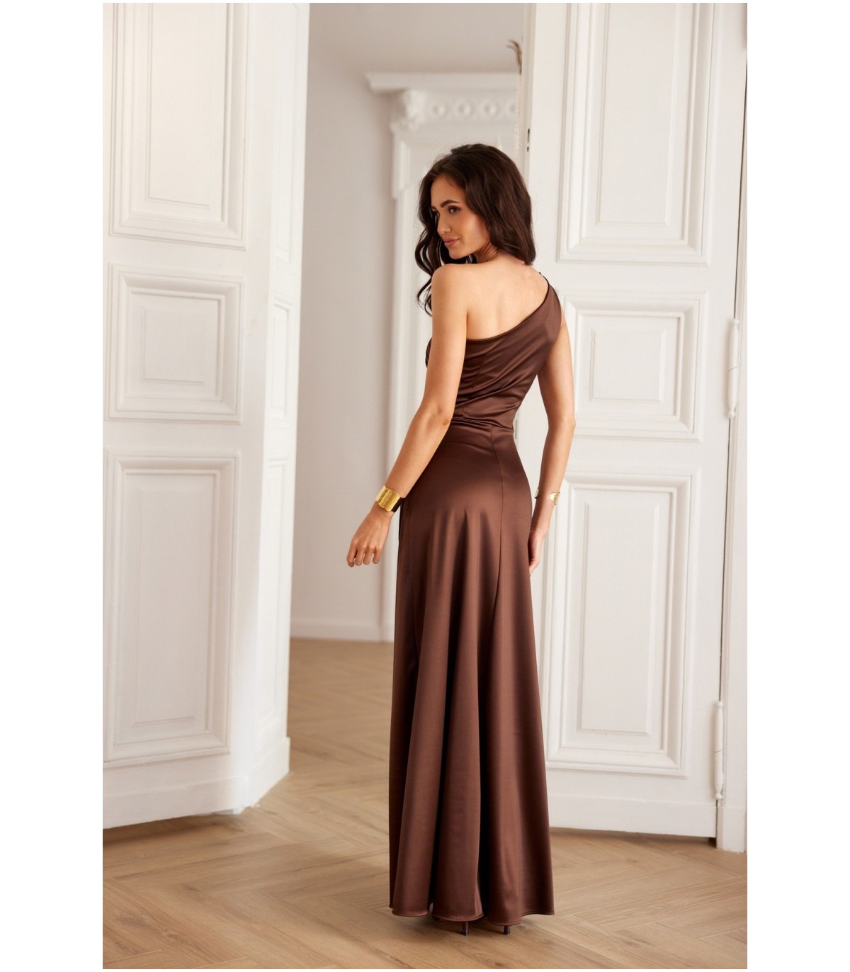 Inez е еднорамна макси рокля от висококачествен сатен,което осигурява леко приспособяване към тялото и удобно усещане.