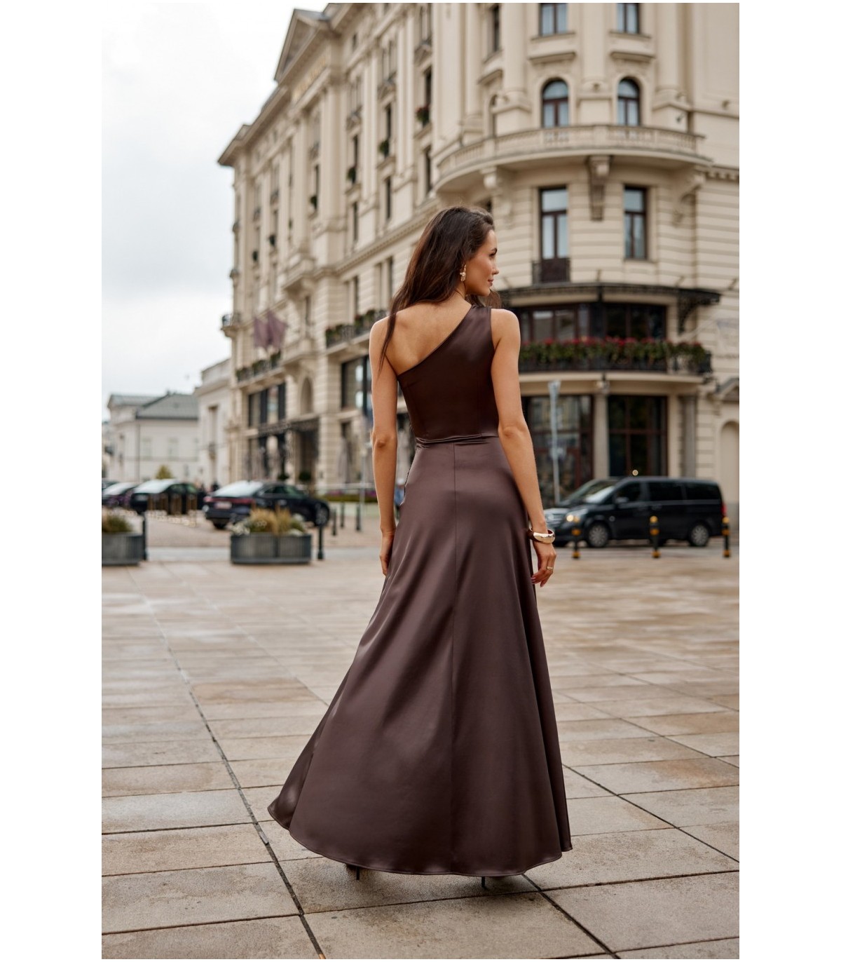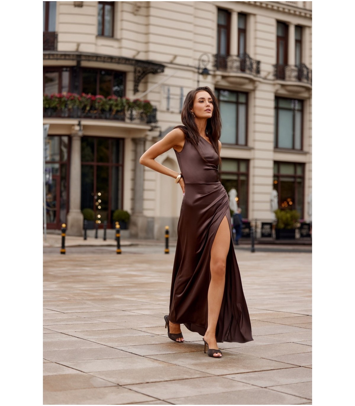 Inez — еднорамна вечерна макси рокля от еластичен сатен с цип