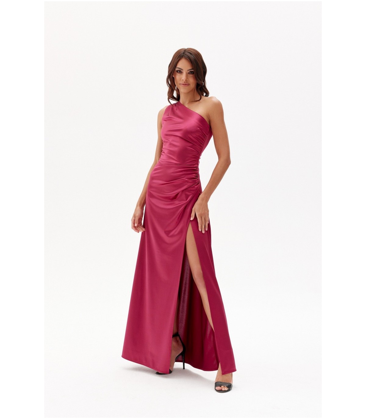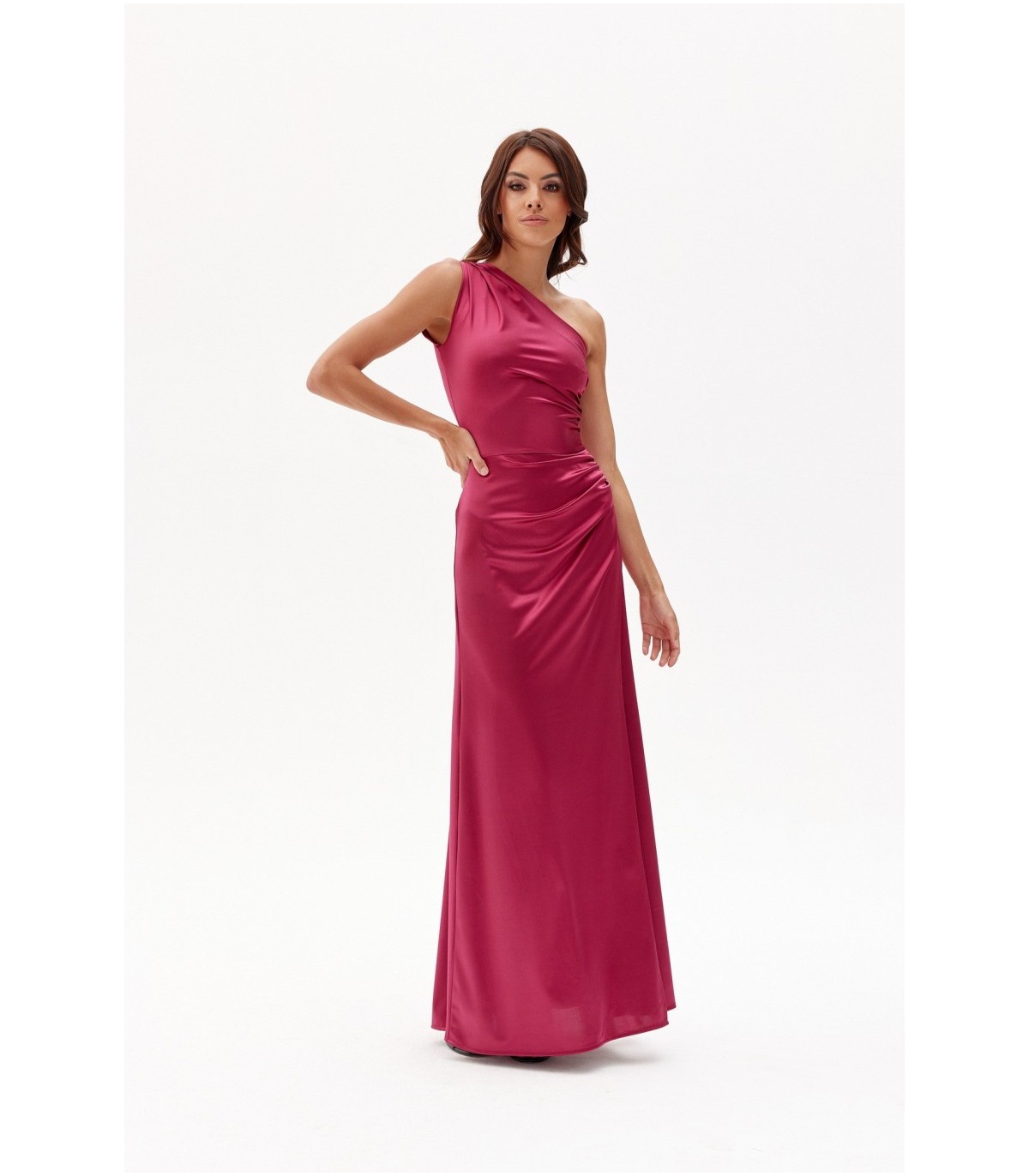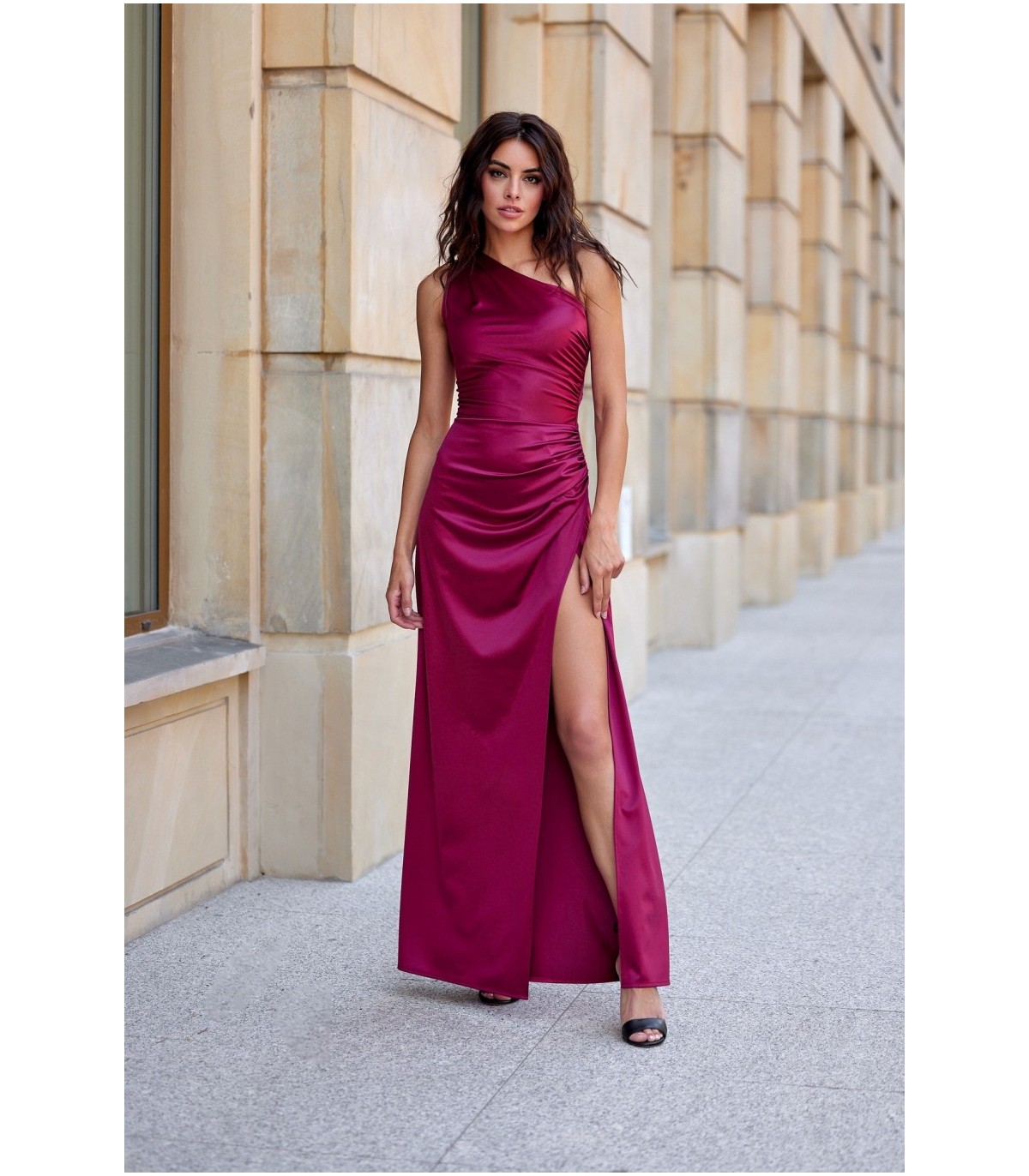 Inez — еднорамна вечерна макси рокля от еластичен сатен с цип